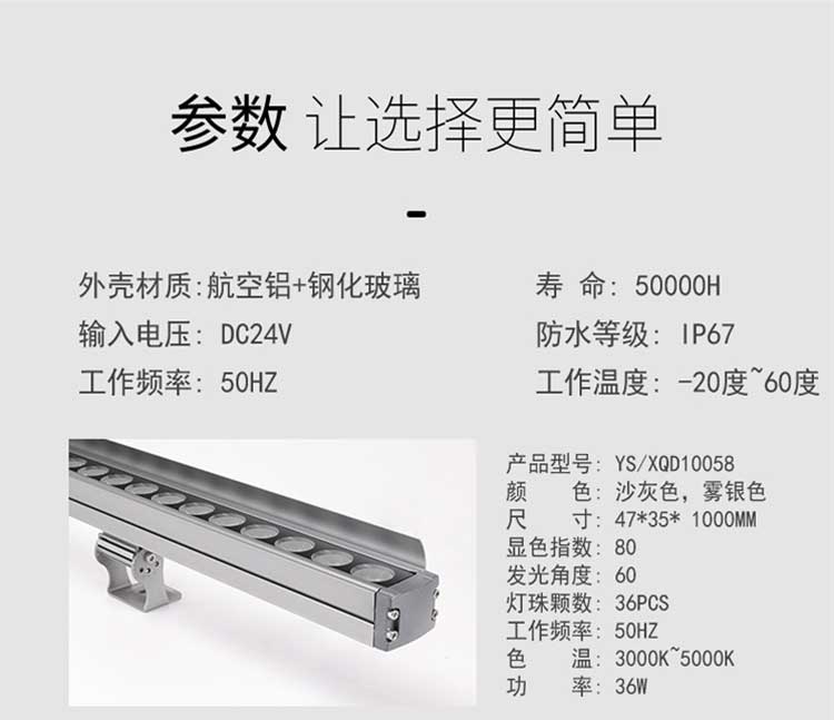 24W:長度為1米;36W:長度為1米;